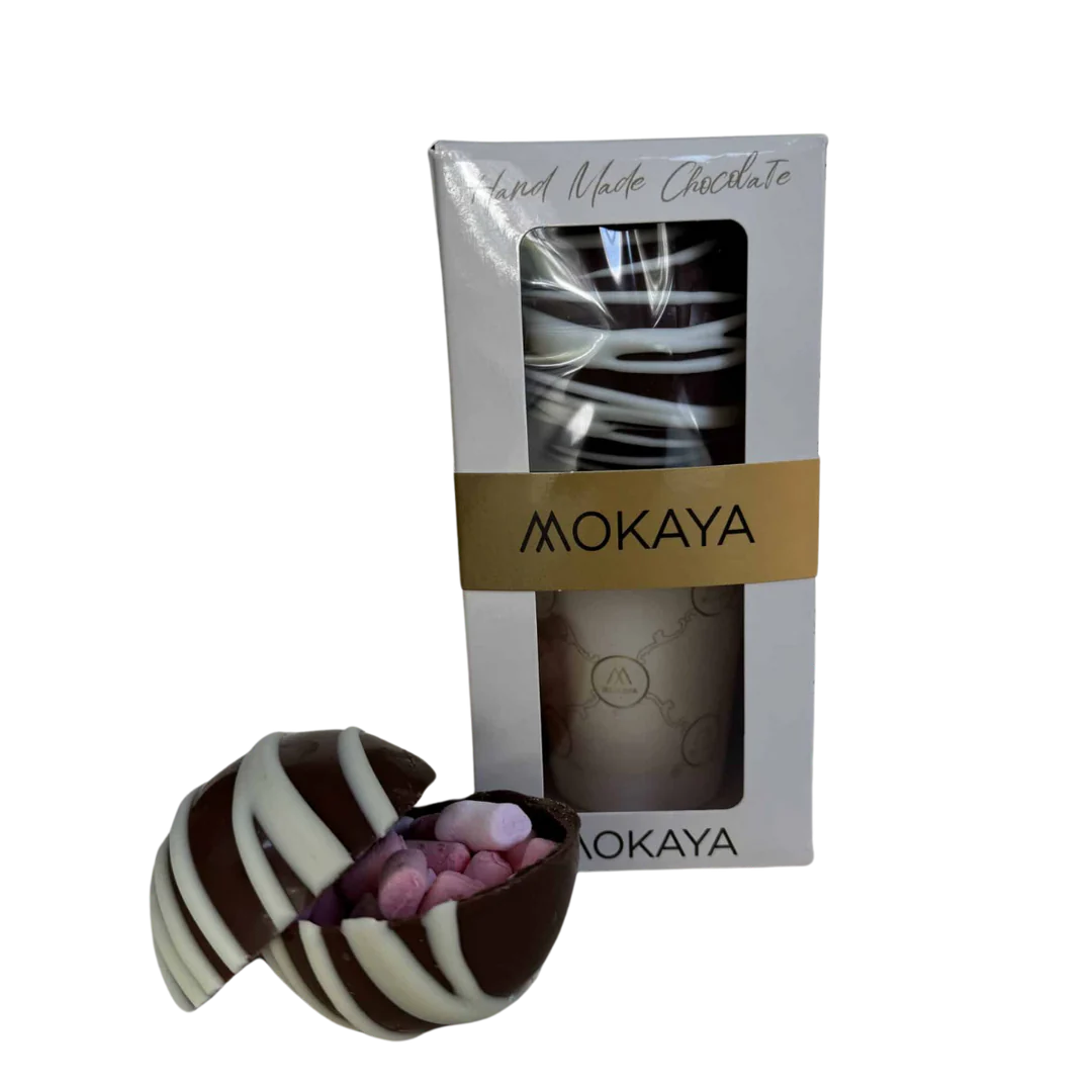 ביצי השוקולד הענקיות של מוקאיה הן הפתעה אמיתית, עשויות 100% שוקולד ולרונה משובח, מריר או חלב, ומלאות בחטיפי שוקולד. זו מתנה מיוחדת שהיא חוויה שאין שניה לה: שבירת הביצה היא אירוע שכולם רוצים לקחת בו חלק. זו ה-אטרקציה שעושה את המסיבה, והיא מתאימה לימי הולדת בכל גיל, חתונה, בת / בר מצווה, שי לעובדים ומגוון אירועים.ר